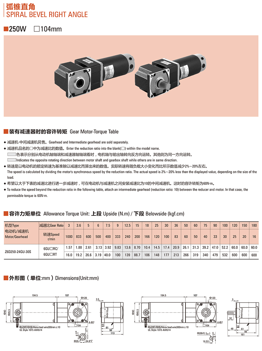 -> Z6D250W弧錐直角軸直流減速電機